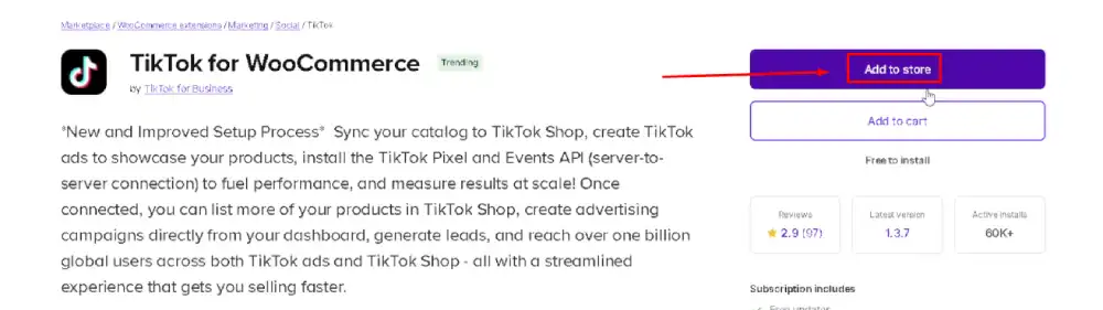 In your WordPress dashboard, go to Plugins and search for TikTok for WooCommerce.